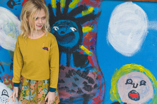 SALE: Langarm-Shirt uni Mustard mit Strauss von Baba