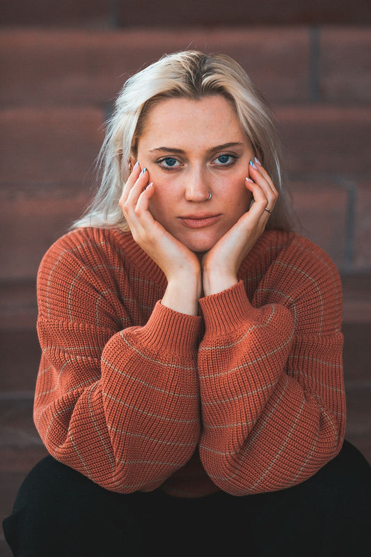 SALE: Strickpullover in Rot mit braunen Streifen von Chills&Fever (ehemals Froy&Dind)