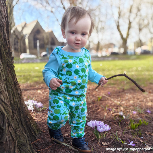 Einteiler-Pyjama mit Radiesli auf Wasserblau