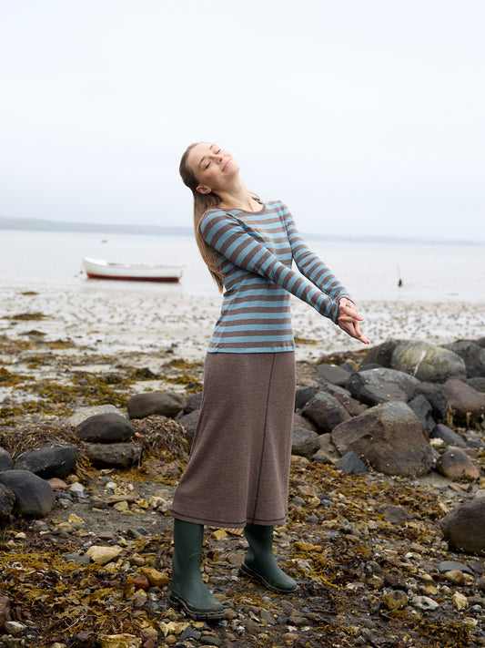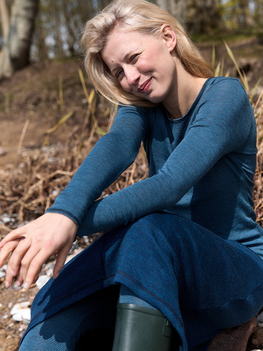 Tunica aus Wolle gestreift in Wood/Aqua Blau von Jalfe