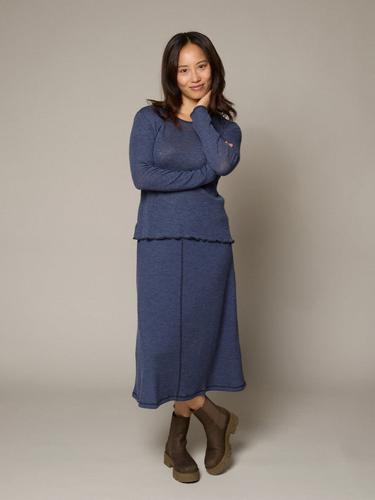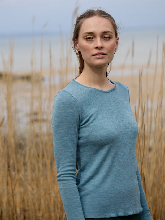 Wolle-Damenshirt Langarm in Aqua Melange