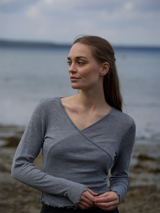 Wolle Wickel-Cardigan in Grau