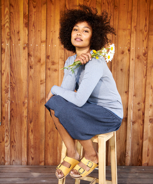 Ganz tolle Bio-Baumwolle und Wolle-Kleider aus Dänemark. Jalfe ist ein Familienunternehmen, welches vor 12 Jahren gegründet wurde. Die Designs und Schnitte werden von Jane selbst erstellt. Die Produkte- und Farbpalette wird immer wieder ergänzt. Alles wird in Dänemark gestrickt und verpackt, während in Litauen genäht wird. Die Wolle ist mulsing-frei und das Färben erfolgt so umweltfreundlich wie möglich.