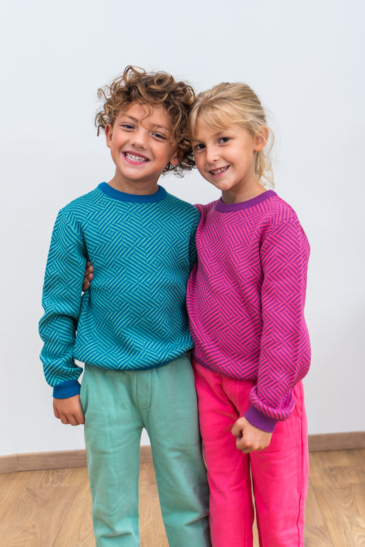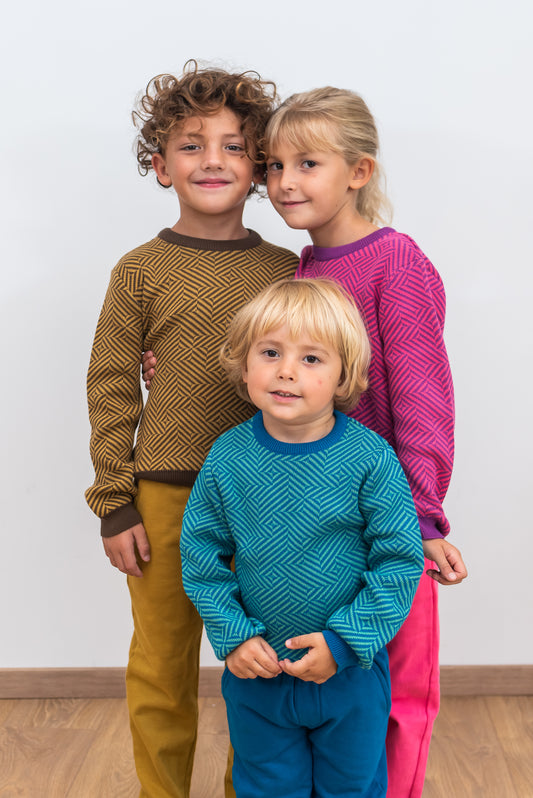 SALE: Gestrickter Pulli geometrisch in Mykonos Blue von Lily Balou