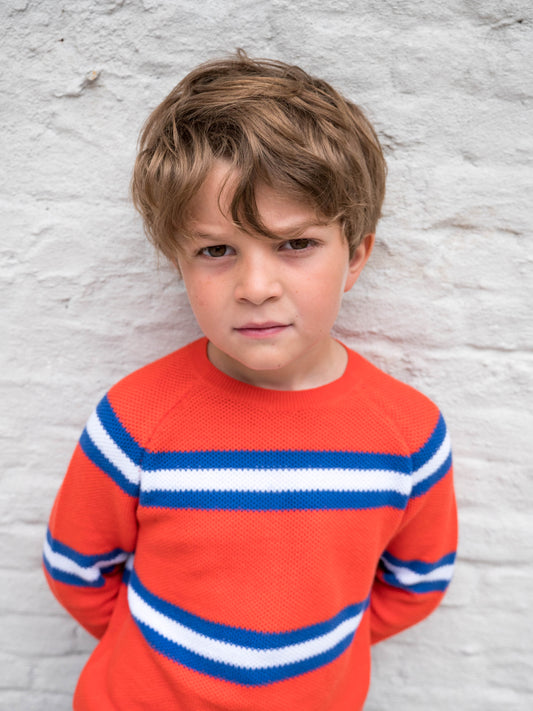 SALE -50%: Rollkragen-Pulli Rot/Bordeaux/Blau gestreift von Lily Balou