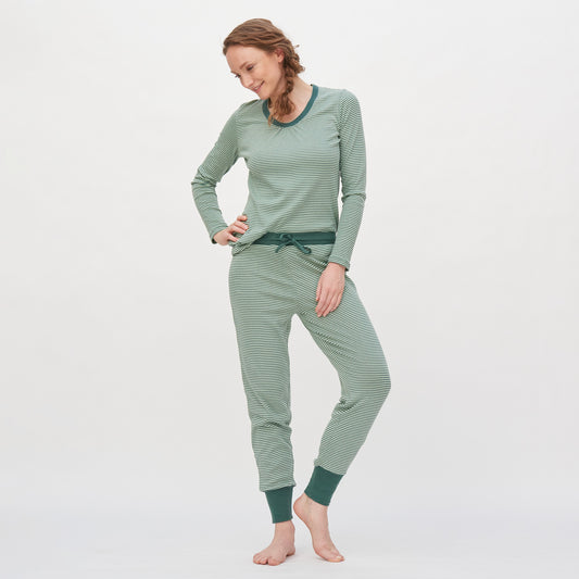 Pyjama-Hose gestreift Dunkelgrün/Hellgrün von Living Craft