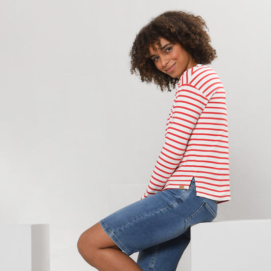 Damenshirt gestreift mit 3/4 Ärmel von Living Craft