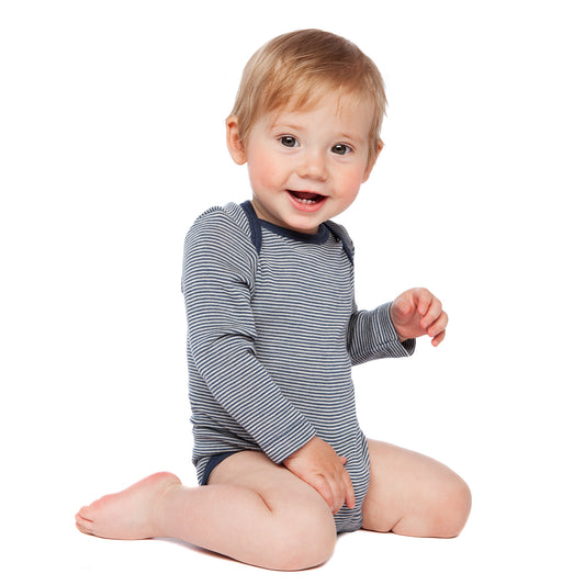 Body Wolle/Seide gestreift Blau/Natur von Living Craft