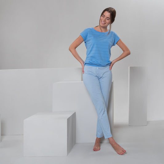 Pyjama-Hose gestreift Hellblau/Natur von Living Craft