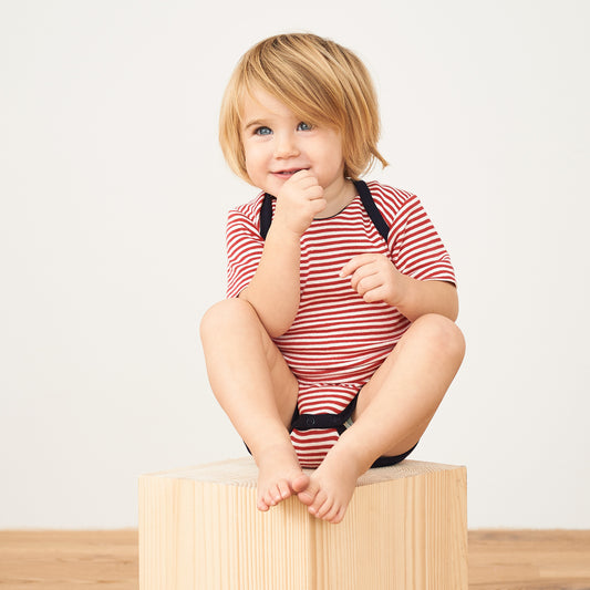 Doppelpack Kurzarm-Body Natur und Rot/Weiss gestreift von Living Craft
