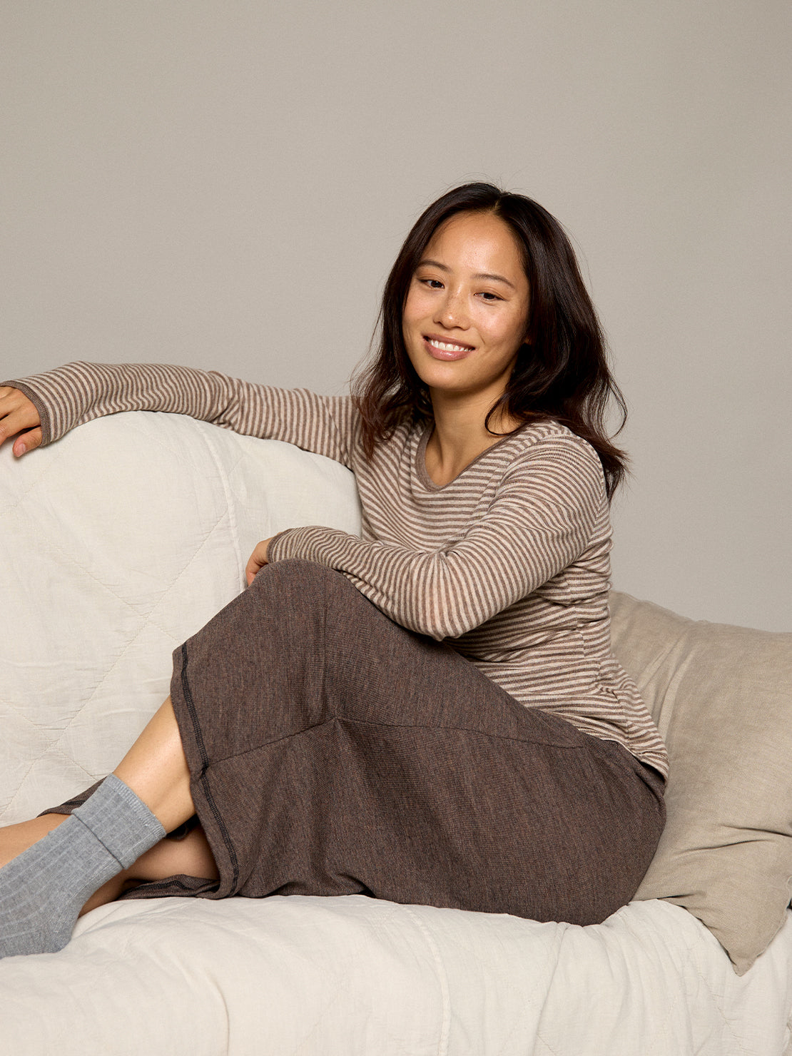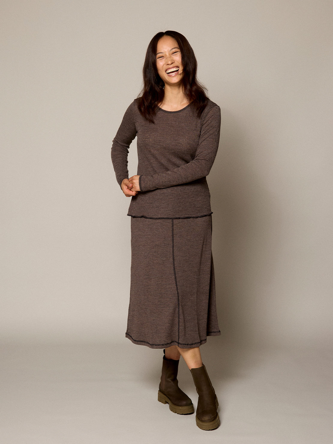 Toller Rib Wolljupe in A-Form von Jalfe. Sehr weich und angenehm, auch von der Stoffdicke und passt sich super an aus 100% Merino-Wolle. Umweltbewusst + fair produziert in Dänemark + Lithauen hergestellt. Passt super den Oberteilen von Jalfe und den anderen Marken!
