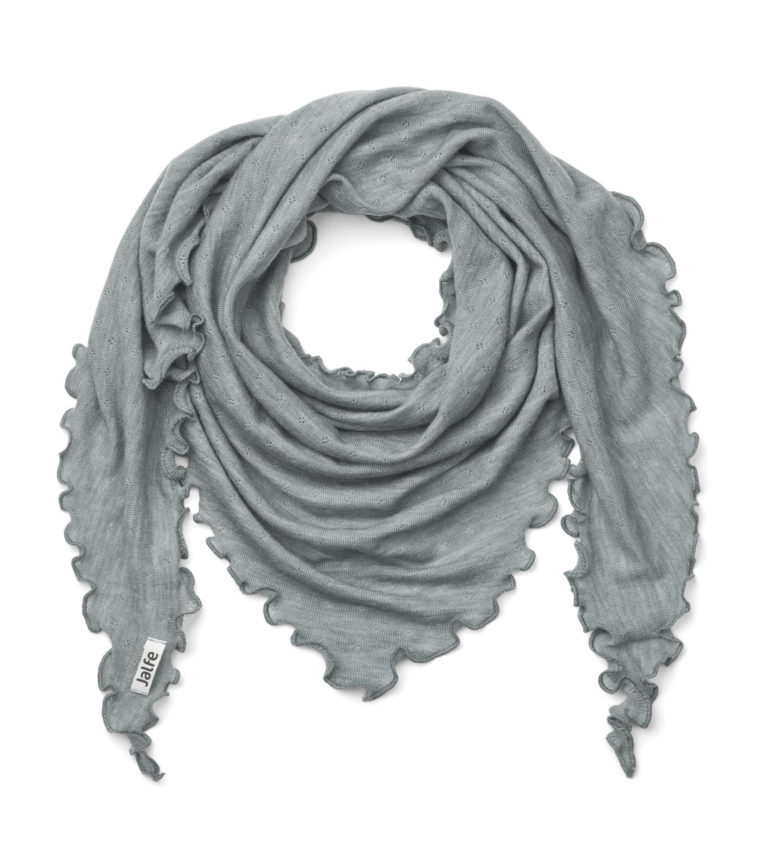 Mit Blumenmuster Löchli, seihe kleines rundes Bild. Perfekt für die kälteren Tage! Ganz fein gestricktes, sehr bequemes, anschmiegsames Dreieckstuch und schöner Farbkombination von Jalfe. Sehr weiches und angenehmes Material aus 100% Wolle. Die Wolle stammt aus einem GOTS zertifizierten Betrieb aus Deutschland, gestrickt wird in Dänemark, genäht in Lithauen. Waschbar bei 30° mit Wollwaschmittel, nach dem Waschen gut in die Länge ziehen. Passt super zu den Shirts, Cardigans und Kleider von Jalfe.