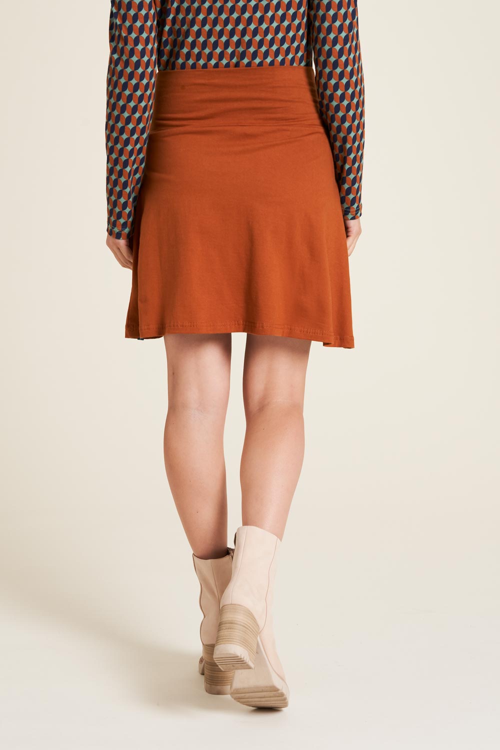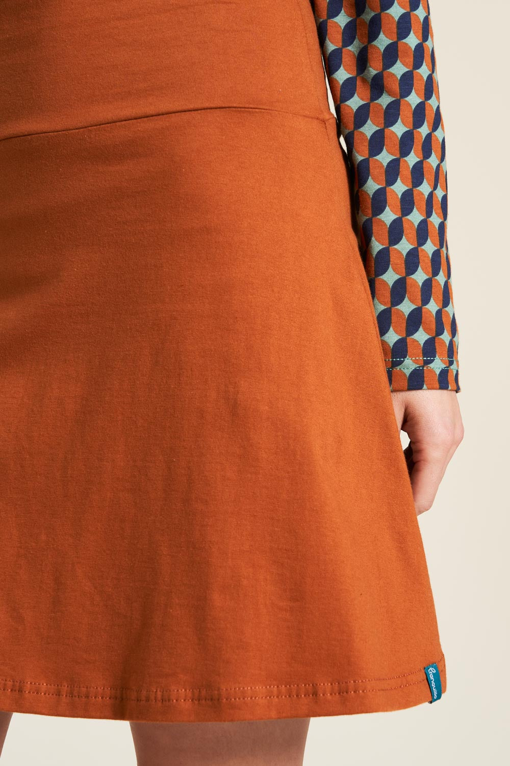 Dieser einfarbiger Rock überzeugt mit femininem A-Shape und modischen Faltendetails. Für einen tollen Tragekomfort sorgen die Verarbeitung aus einem wunderbar weichen Bio-Baumwoll-Mix und der breite Jersey-Bund, den du umschlagen kannst. Kombiniere den Minirock zu einem passenden Jersey Shirt und einer gemütlichen Strickjacke. Knielang, elastischer breiter Bund und unten leicht ausgestellt. Aus Stretch Jersey 95% Bio-Baumwolle und 5% Elasthan. Fair und umweltbewusst in Indien produziert, GOTS zertifiziert. Passt super zu den Shirts von Tranquillo und ATO. Passform: Gesamtlänge bei Größe S - 51 cm