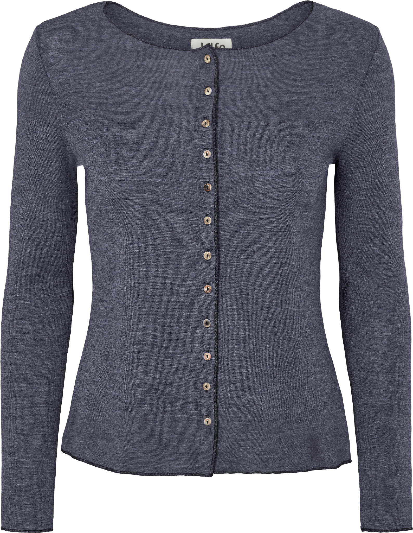 Schöner Cardigan von Jalfe. Sehr weiches und angenehmes Material aus 100% Wolle. Die Wolle stammt aus einem GOTS zertifizierten Betrieb aus Deutschland, gestrickt wird in Dänemark, genäht in Lithauen. Waschbar bei 30°, nach dem Waschen gut in die Länge ziehen. Von der Stoffdichte her entspricht er den Wolleshirts von Jalfe (kein Rippstrick). Passt sehr schön zu den Jupes und Kleidern von Jalfe. Passend dazu gibt es auch das Dreieckstuch.