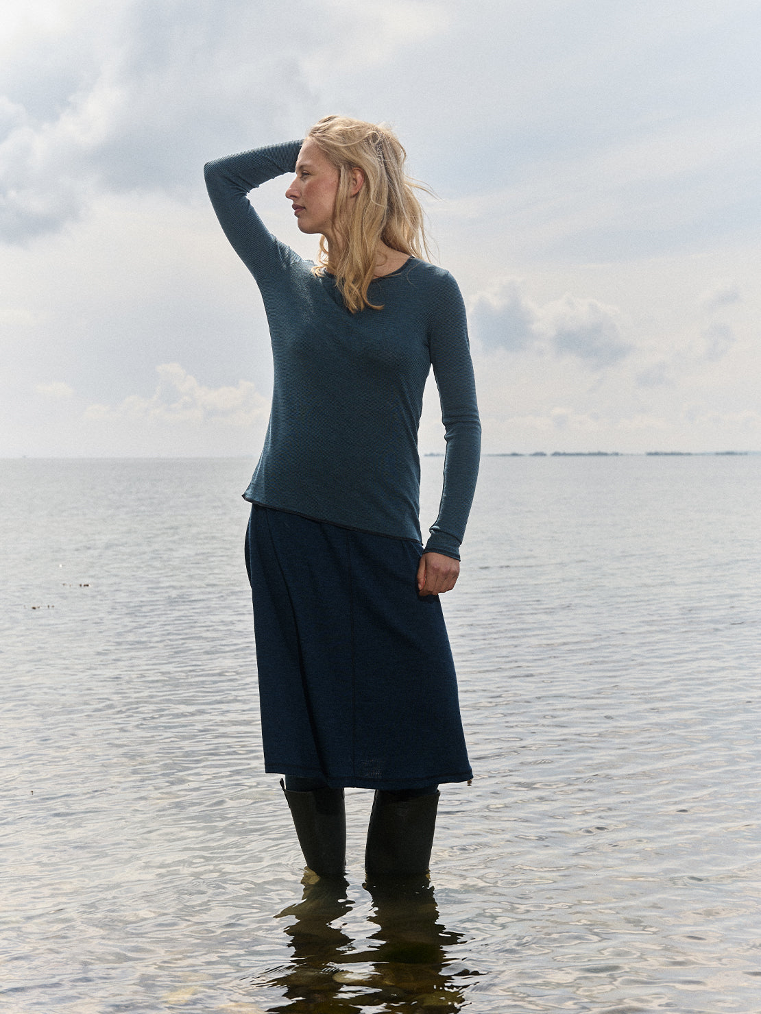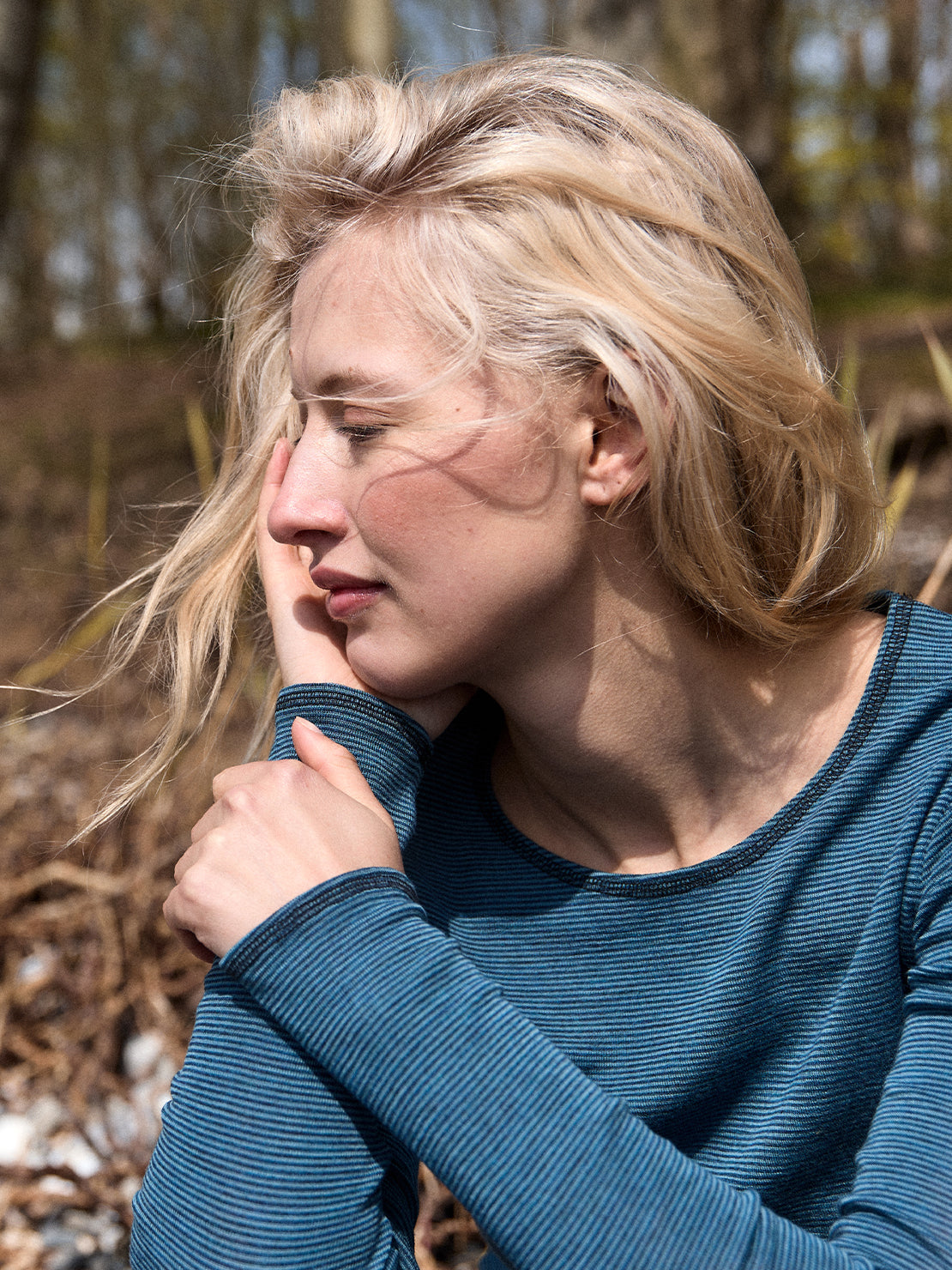 Wolle-Shirt dünn gestreift Petrol-Salbei Melange